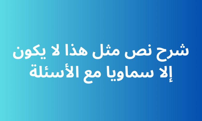 شرح نص مثل هذا لا يكون إلا سماويا مع الأسئلة